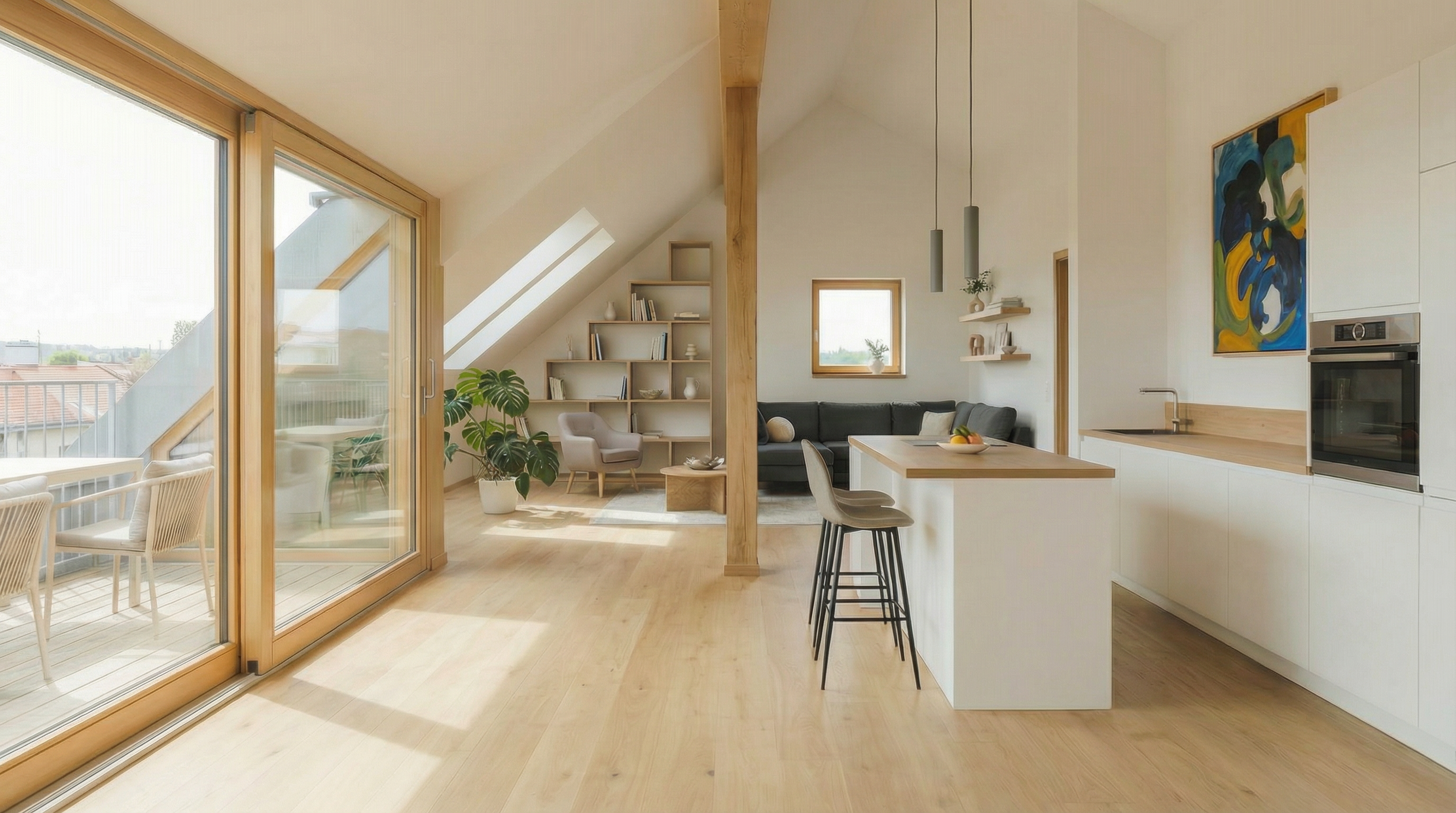 Holzfenster mit Dreifachverglasung als Wärme- und Schallschutz